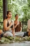 - Open-air shala featuring a waterfall view and a floor to ceiling mirror – fully equipped with yoga mats, bolsters, blocks, and straps.